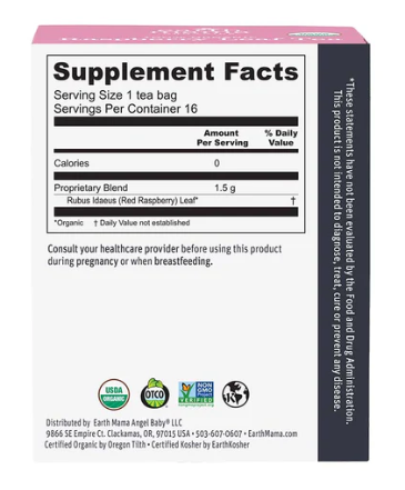 This Red Raspberry Leaf Tea, specifically crafted for pregnancy, is an herbal labor tonic and menstrual support tea, presenting a rich, full-bodied experience. USDA Certified 100% Organic by Oregon Tilth and Non-GMO Project Verified, this tea allows raspberry leaf to become a cherished ally for your uterus, bringing you closer to the nurturing embrace of Earth Mama Organics with each comforting sip.
