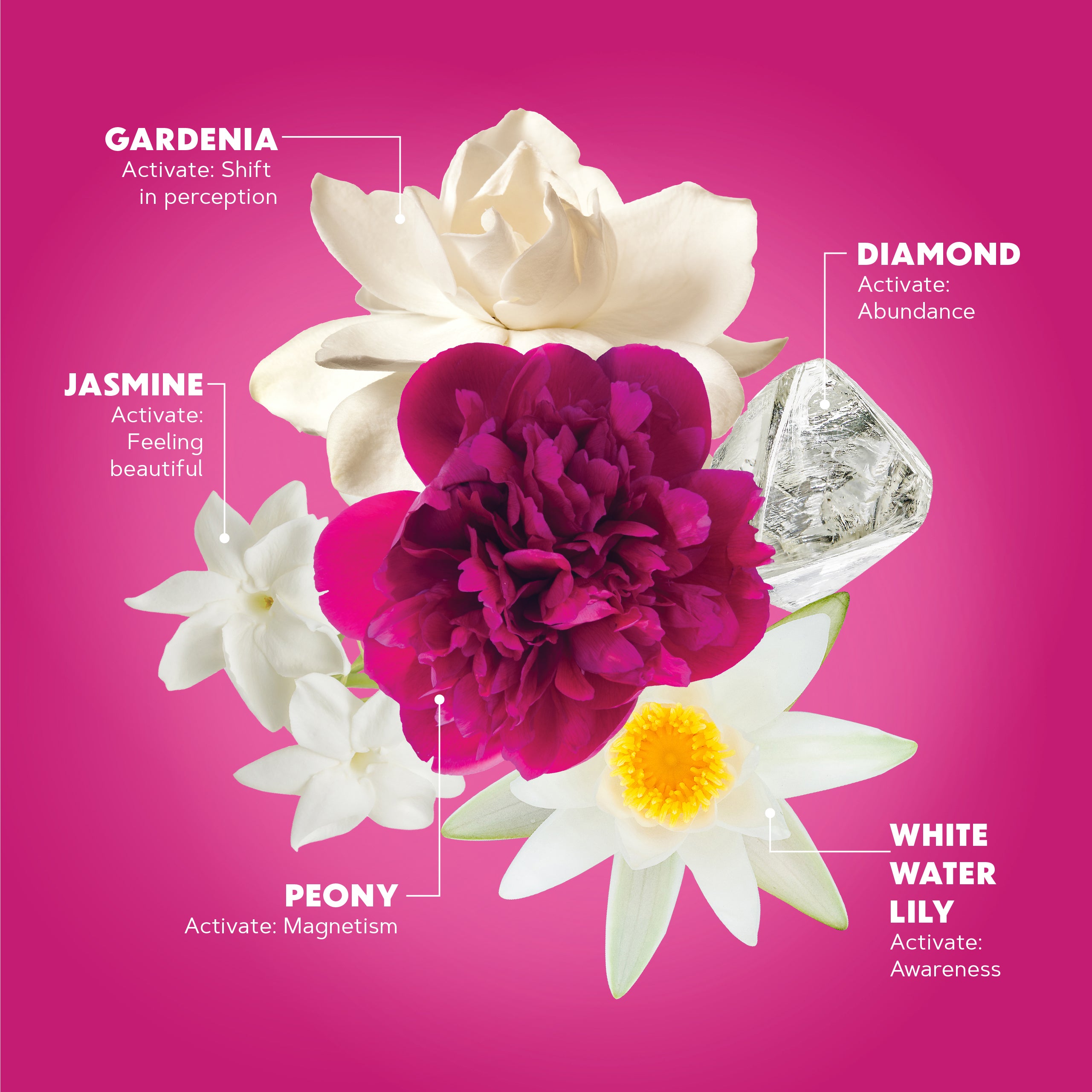 Lush ylang ylang, jasmine, and neroli — sensual, golden, and effervescent.